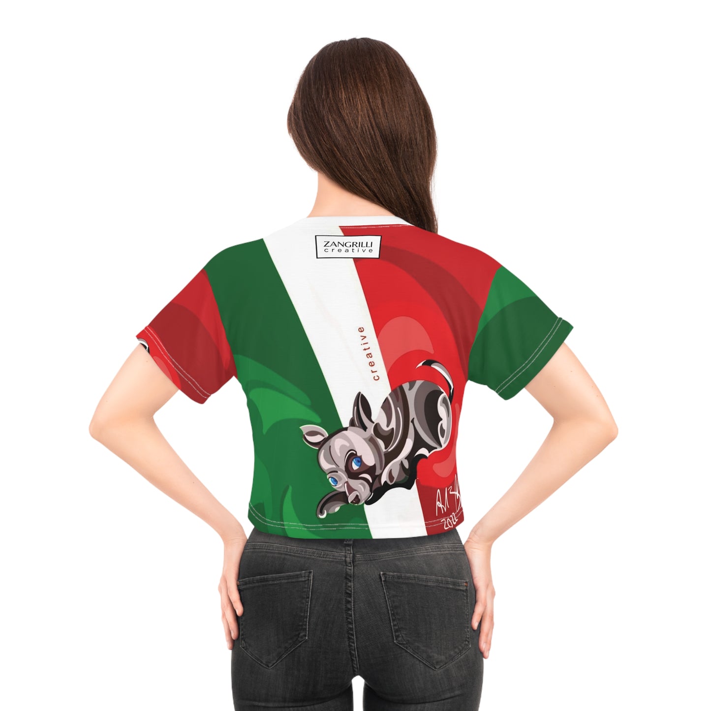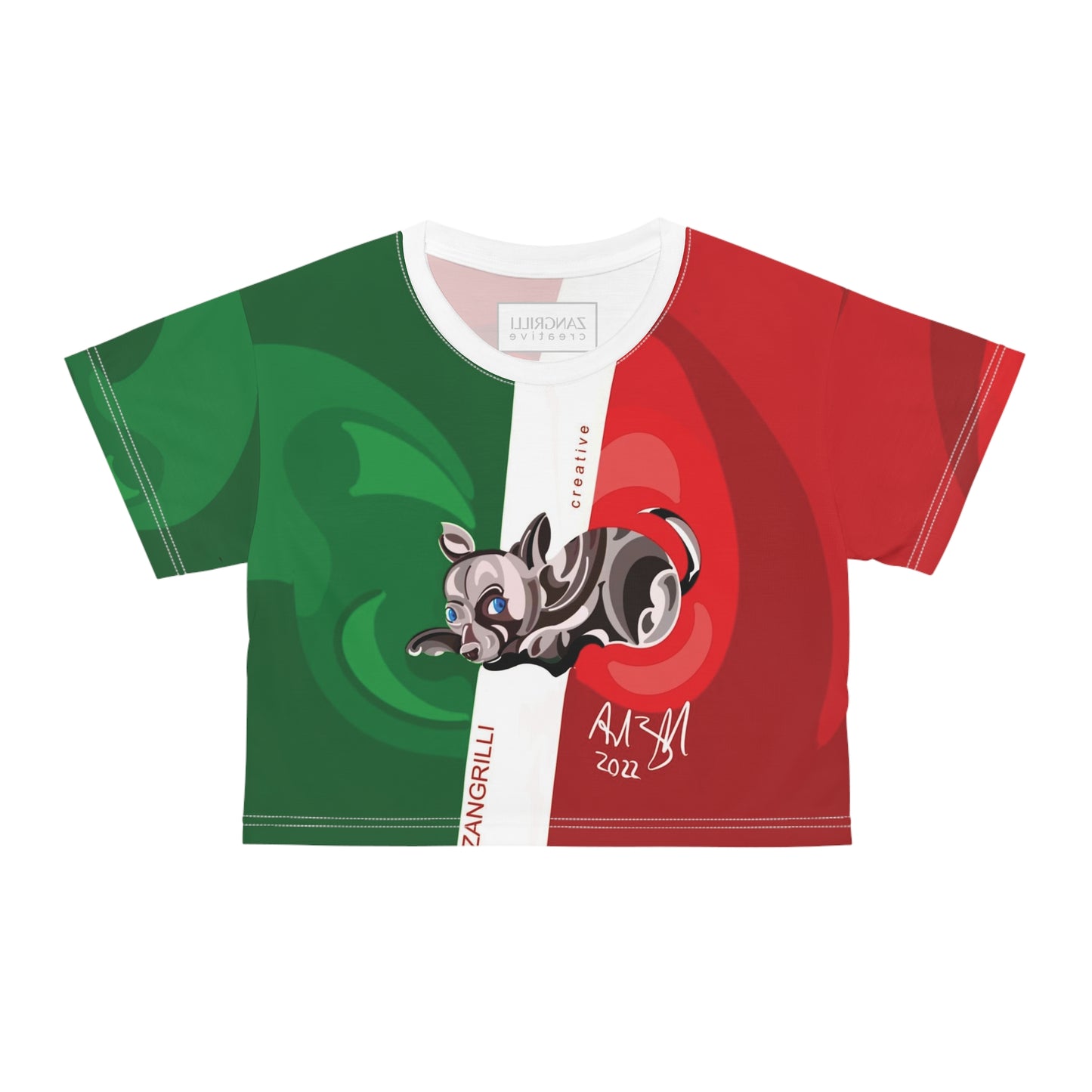 Love this custom interpretation of the Italian flag. Feebee was always the perfect companion and so is this silky, soft, 100% polyester crop top.
